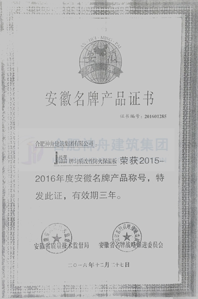• 熱烈祝賀“竣捷”牌保溫材料榮獲安徽名牌產(chǎn)品榮譽(yù)稱(chēng)號(hào)